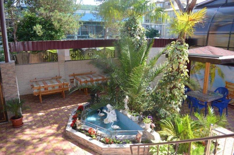 Есть беседка, где вы сможете отдохнуть на свежем воздухе. Так же отдохнуть можно на свежем воздухе на шезлонгах возле бассейна., а для ваших детей есть оборудованная детская площадка.